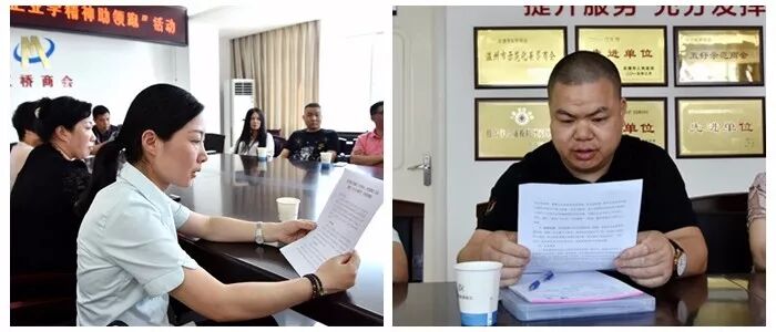 活动期间,小组一行在商会五楼会议室组织学习了虹桥镇党委《关于深入开展以“不忘初心、牢记使命”为主题的“红七月•服务月”活动的通知》和乐清市工商联、总商会《关于开展“访企业 学精神 助领跑”活动的通知》(乐联发〔2018〕5号)等内容。