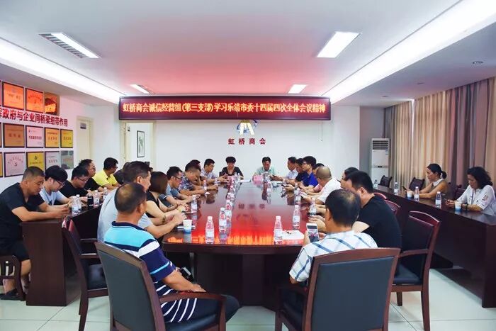 为认真学习贯彻习近平总书记关于浙江省“八八战略”实施15年情况报告上作出的重要指示精神,切实把思想和行动统一到重要指示精神上来,进一步坚定信仰定力、政治定力、战略定力,奋进新时代,交出新答卷,8月18日下午,虹桥商会诚信经营组、第三党支部在商会五楼会议室开展学习乐清市委十四届四次全体会议精神主题活动。