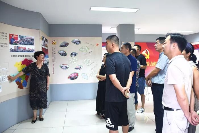 会前,我会党建工作指导员林丹带领小组成员参观了商会工作宣传栏、党建工作展示栏和小组(党支部、工会)活动展板,让他们更加全面的了解虹桥商会的实际运营和各小组的精彩活动。