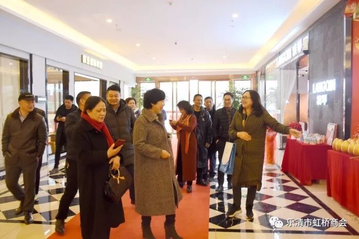 在乐清金虹桥市场管理有限公司,总经理庄再余带领大家参观了已经开放的商场,经介绍了解到商场在2016年开始建设2017年建成,2018年1月1日试营业,主要加盟的商户类型是家具和建材行业,他对大家的到来表示欢迎,同样表示加入虹桥商会这个大家庭非常幸运。