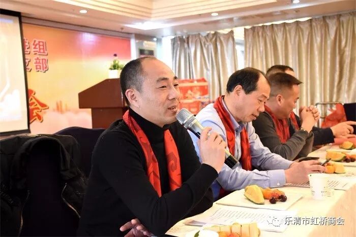 商会办公室主任高泉智表示每次活动的开展都非常不易,希望大家支持小组、组委会的各项安排。随后,他分享了前往北京领取“创新中国”最佳案例奖的荣耀,他表示2018年是虹桥商会全面发展的关键一年,商会一年来取得的成绩和荣誉离不开小组成员的支持。他还分享了出席中国民营经济年会的所见所闻,会议指出,为适应新时代发展的步伐,民营企业要坚持学习习总书记重要讲话精神、要有责任感、要自主创新创造品牌、要知法学法守法还要注重二代接班人培养等去攻克“三座大山”,会议希望广大民营企业家要有信心,深刻领会习总书记对于大家的期望,聚焦实业,办好实业,为乐清经济建设贡献力量。