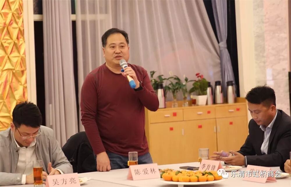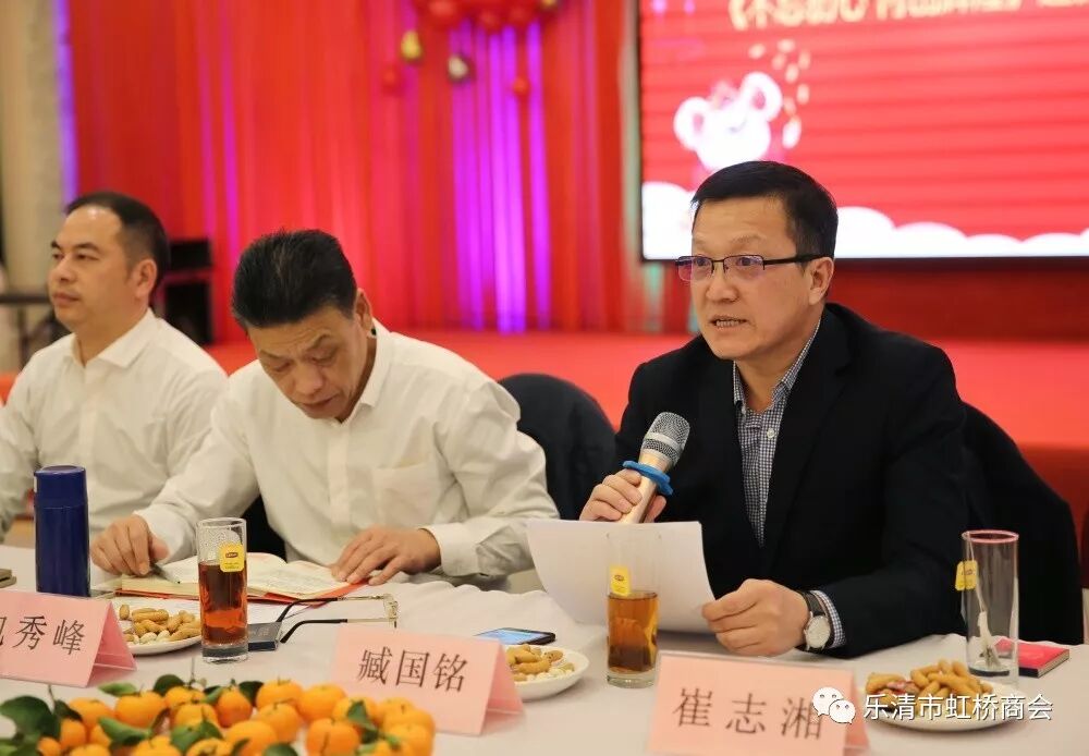 商会副会长李育锋向大家拜了个早年,他分享了虹桥农业银行在2019年的情况,指出在国内外各种因素情况下,国家推出了一系列服务民营企业的政策,希望在2020年大家能够增多了解,及时沟通惠企政策,给予大家更多在金融方面的支持。
