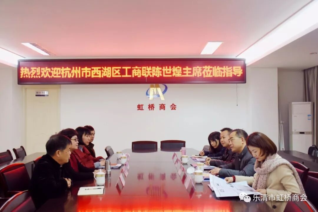 Wonderful graphic3月6日,杭州市西湖区工商联党组成员、副主席陈世煌等一行在乐清市工商联党组副书记、副主席、秘书长赵阿玲的陪同下,莅临虹桥商会调研指导工作。