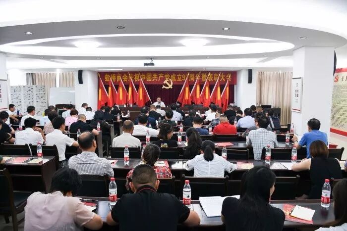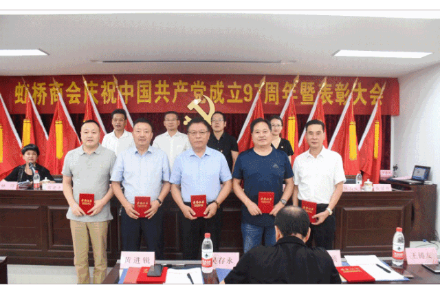 Wonderful graphic6月16日上午,虹桥商会隆重召开庆祝中国共产党成立97周年大会,会议邀请了中共温州市委组织部两新处处长朱启仁上党课,并对商会优秀共产党员、优秀党务工作者和先进党支部进行了表彰。中共乐清市委组织部两新工委副书记、部务会议成员徐金朴,虹桥镇镇长、党委副书记徐晓斌,镇党委组织委员赵爽等领导和虹桥商会党总支书记、委员,商会各党支部书记、委员,中心党支部全体党员,商会的党员代表、企业家代表、会员代表、小组联络员共120余人出席了会议。会议由党建工作指导员林丹主持。