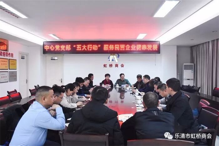 为深入贯彻落实习近平总书记在民营企业座谈会上的重要讲话精神,推动两新党组织在服务民营经济高质量发展中发挥实质作用,2月27日下午,在虹桥商会中心支部在商会五楼会议室开展了“五大行动”服务民营企业健康发展专题学习会。