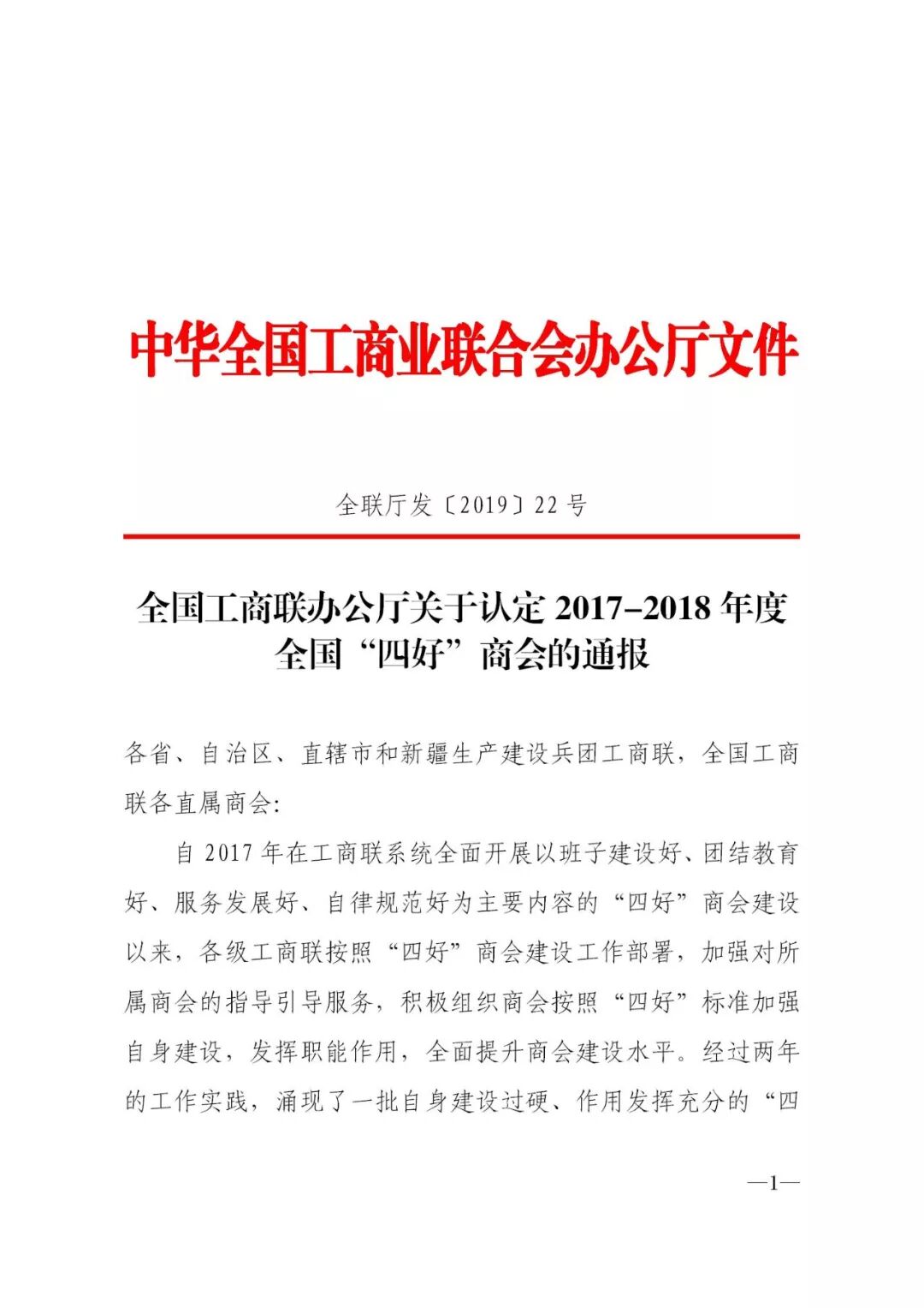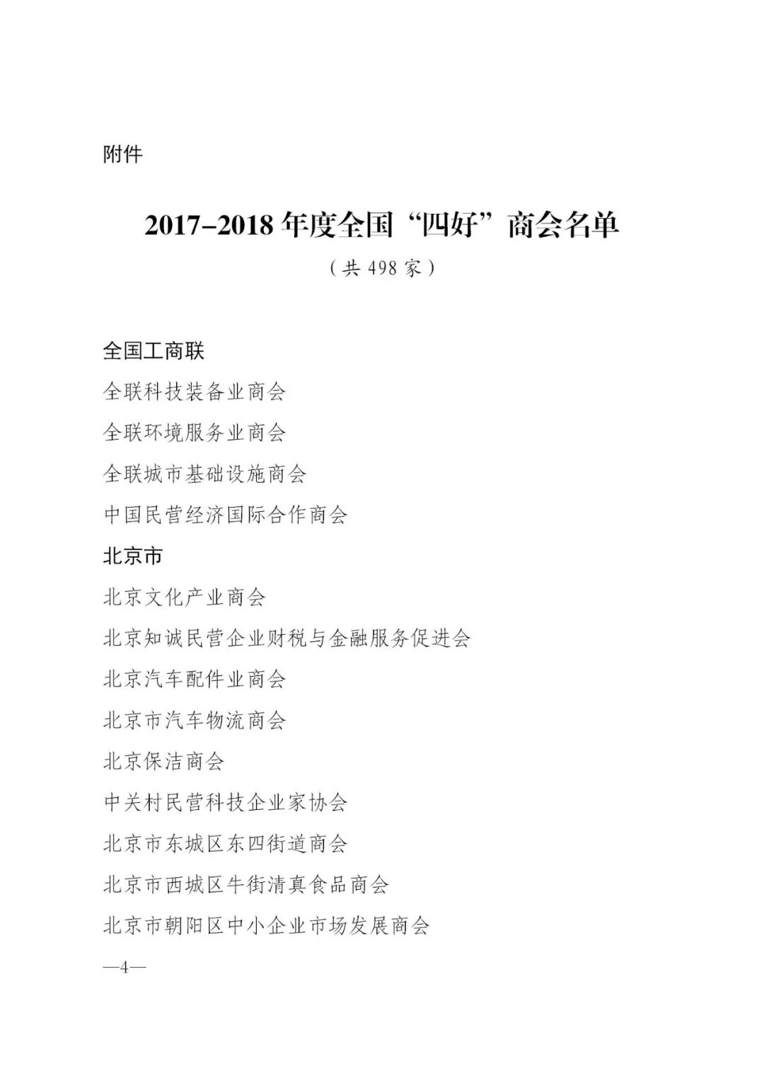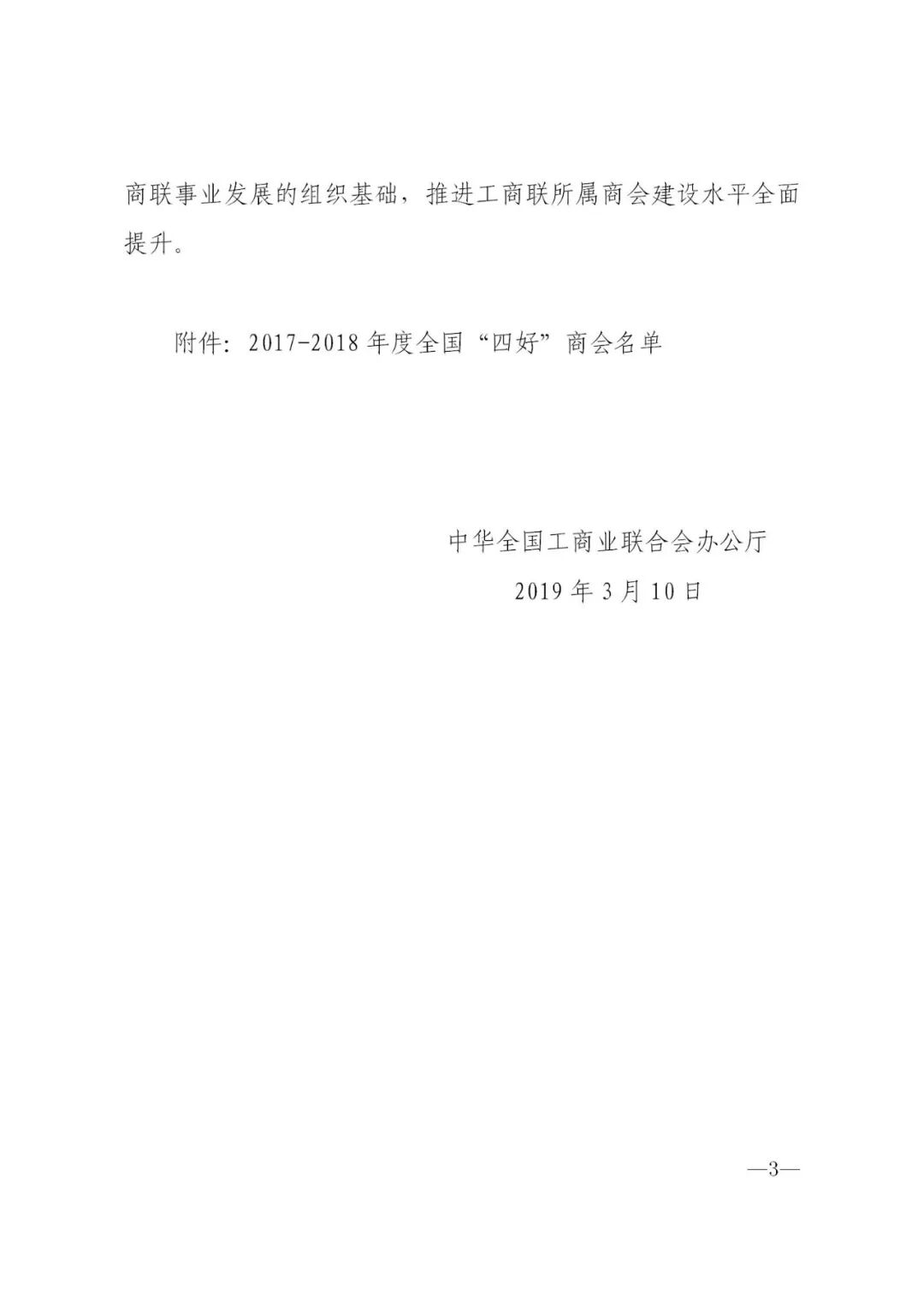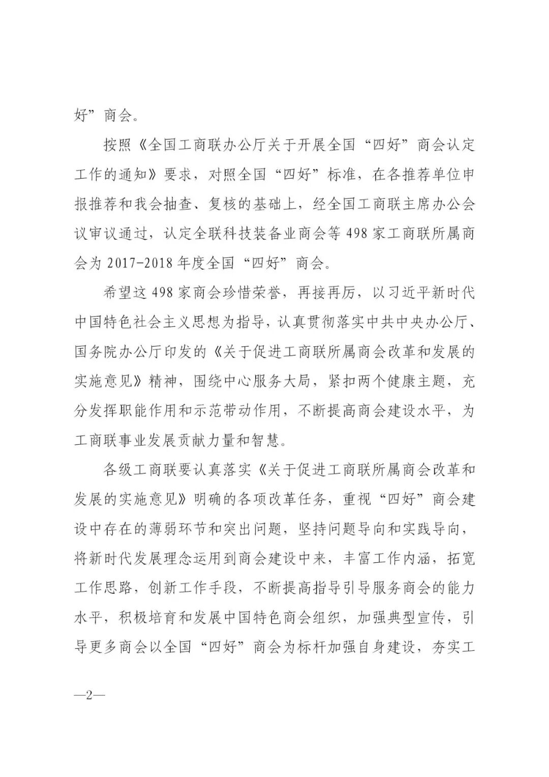 附件:《全国工商联办公厅关于认定2017-2018年度全国“四好”商会的通报》——节选文件内容和虹桥商会获奖处