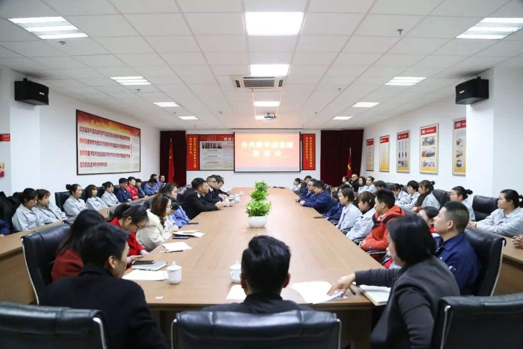Wonderful graphic春节将至,岁寒情深,为了让困难职工度过一个温暖的新春佳节,1月10日下午,合兴在南阳厂区会议室8组织召开了2020年新春“送温暖”座谈会。出席的领导有乐清市总工会副主席王里程、虹桥镇党委副书记李捍峰、虹桥镇总工会李祖义主席、合兴总裁蔡庆明,会议由合兴工会主席张守奎主持。各子分公司工会负责人及51名困难职工参加了座谈会。