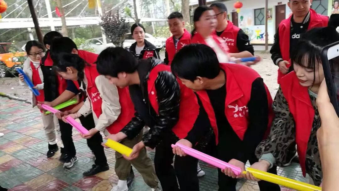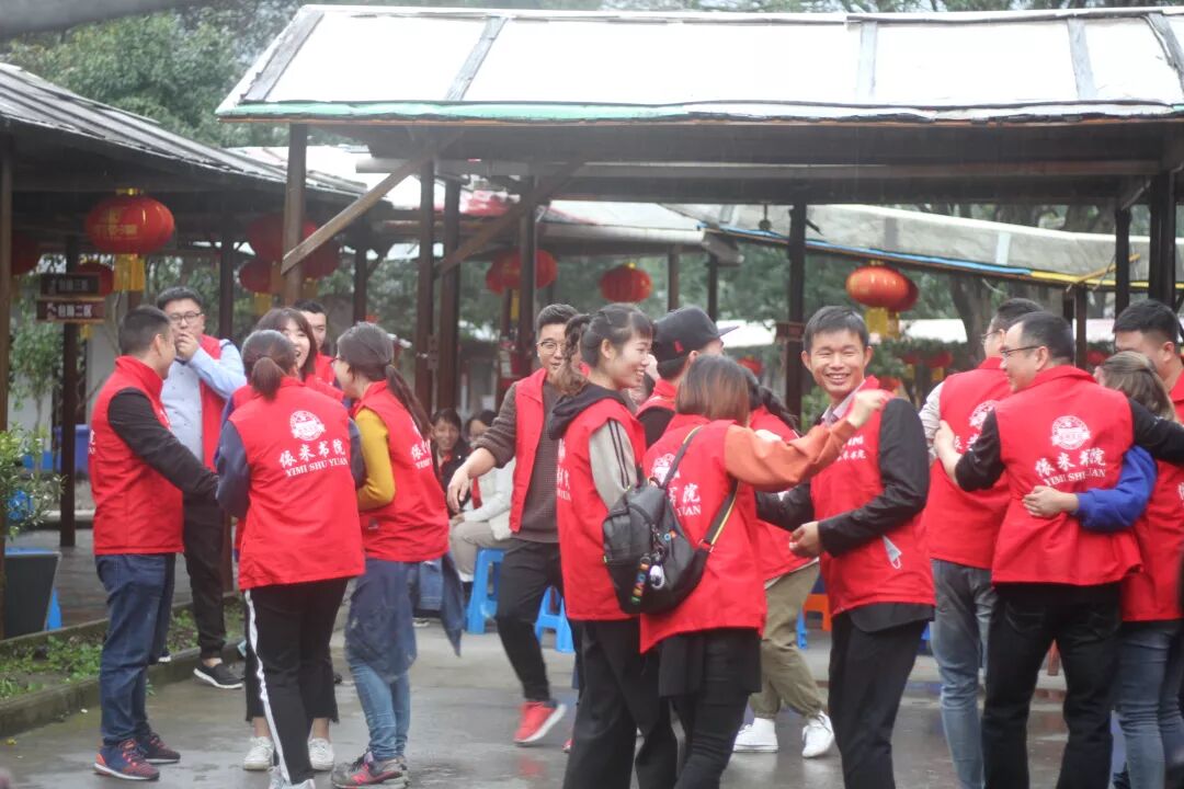 下午1点多,烧烤活动结束,大家稍微休息片刻,马上又开始户外拓展活动,团队拓展活动由王海荣老师主持。因为下着小雨,原计划的活动场地由户外改到了走廊。全体学员分成4组PK,团队之间举行了各种各样的娱乐活动。雨天丝毫没有减少同学们活动的热情。