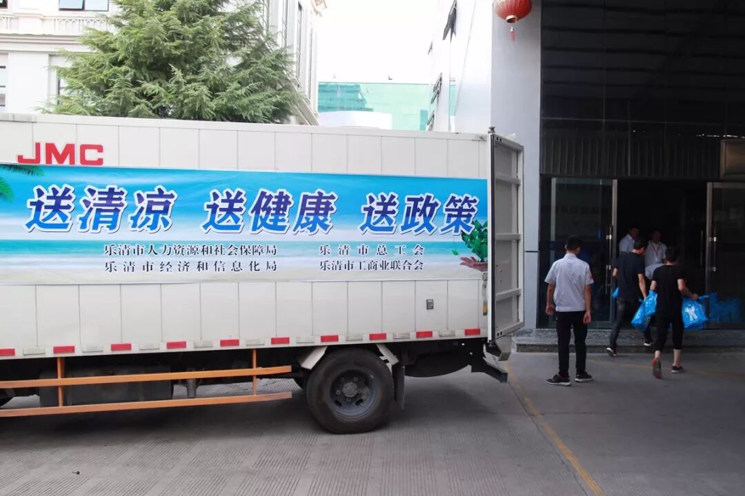 Wonderful graphic进入三伏天以来,乐清迎来持续高温,热浪袭人。8月10日,乐清市总工会党组成员副主席戴成福带队,市经信局、市人力资源社会保障局等相关人员一行冒着酷暑来到浙江康信汽车电器有限公司,开展夏日“送清凉”活动。
