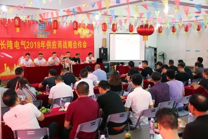 Wonderful graphic9月23日,以“转型升级、二次腾飞”为主题的浙江长隆电气2018年供应商战略合作会在蒲岐浙江长隆电气有限公司隆重召开。本次合作会共有近40家主要供应商代表参加,公司董事长薛道德等主要人员参加了会议,并分别作了重要的讲话。