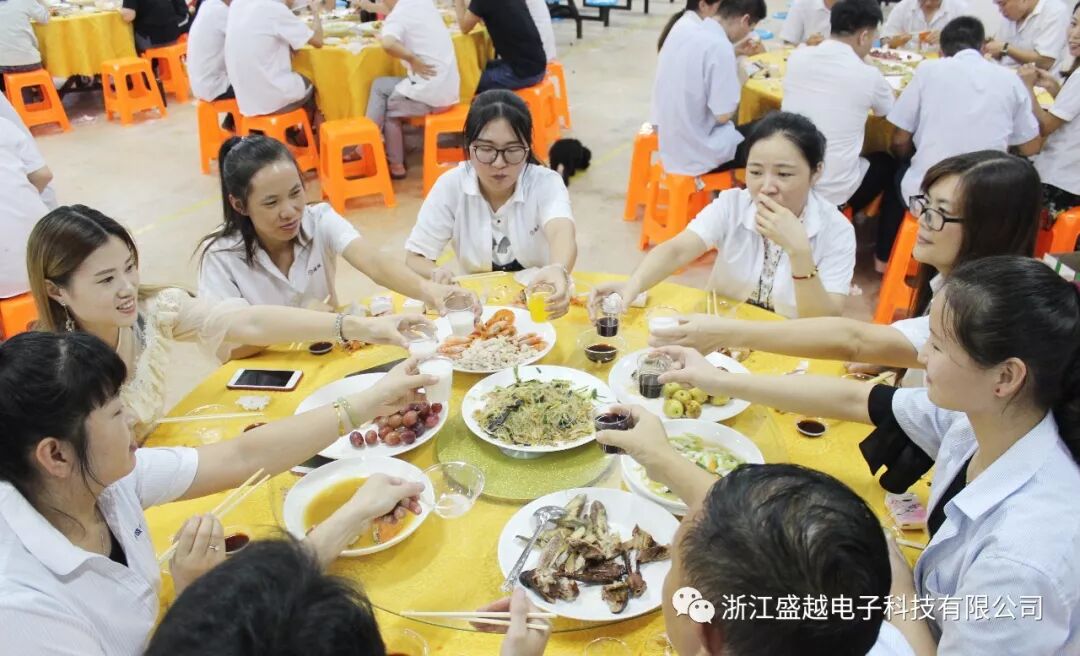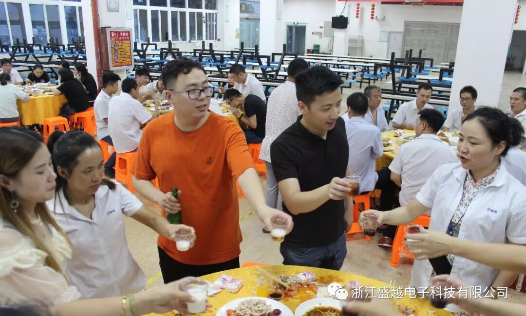 浙江盛越电子科技有限公司,在此佳节之际,祝福所有员工中秋节快乐,阖家安康!为此公司特意给所有员工送上佳节礼物,并举行会餐活动!