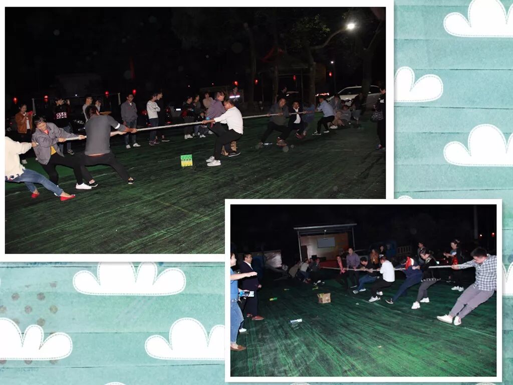 在聚餐中,员工们拉拉家常、叙叙趣事、相互敬酒,气氛很温馨,给人一种大家庭的温暖。之后,我们组织了拔河比赛。主题是:凝聚力量、奋发向上,坚持“友谊第一,比赛第二”的原则,我们全部会员参加,男女搭配分成四组。宣布比赛规则后,会员们个个摩拳擦掌,欲欲跃试,信心满满。随着哨声一响,比赛开始了,他们像一只只虎虎生威的猛虎,使出全身的力气向后拉,绳子中间的红领巾,一会儿移这边,一会儿移那边,农家里的的顾客被拔河的气氛渲染着都跑过来加入到“啦啦队”的队伍中,“加油加油”声响彻整个上空,终于决出输赢,赢得队跳着蹦着,欢声笑语,谈论着胜利的喜悦,另一队虽然输了,他们在总结经验,等待着下一轮比赛,气氛热火朝天。