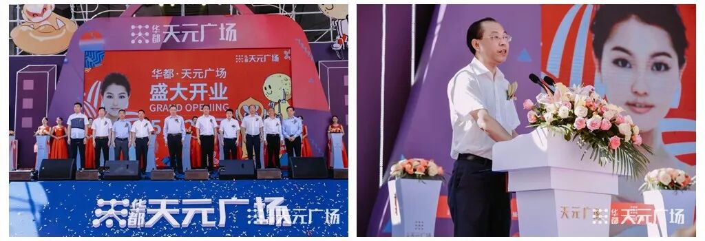 在喧天的锣鼓声中,受邀领导一同登台剪彩。领导嘉宾醒狮点睛、采青吐幅。9点18分,吉时吉刻已到。在万众期待中,施建强总裁朗声宣布:“华都·天元广场开业大吉!”,华都·天元广场以招商率100%、开业率100%的完美姿态正式开业,喜迎八方来客!