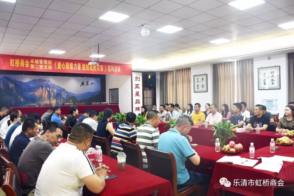 Wonderful graphic8月21日,虹桥商会卓越管理组、第二党支部在常务副会长包秀峰、副会长陈日曙、武素贞,小组秘书长、党支部书记吴宝顺的带领下,前往受今年第9号台风“利奇马”灾害最为严重的副会长单位乐清市五星混凝土有限公司进行了走访慰问。小组为五星混凝土准备了一万元慰问金。