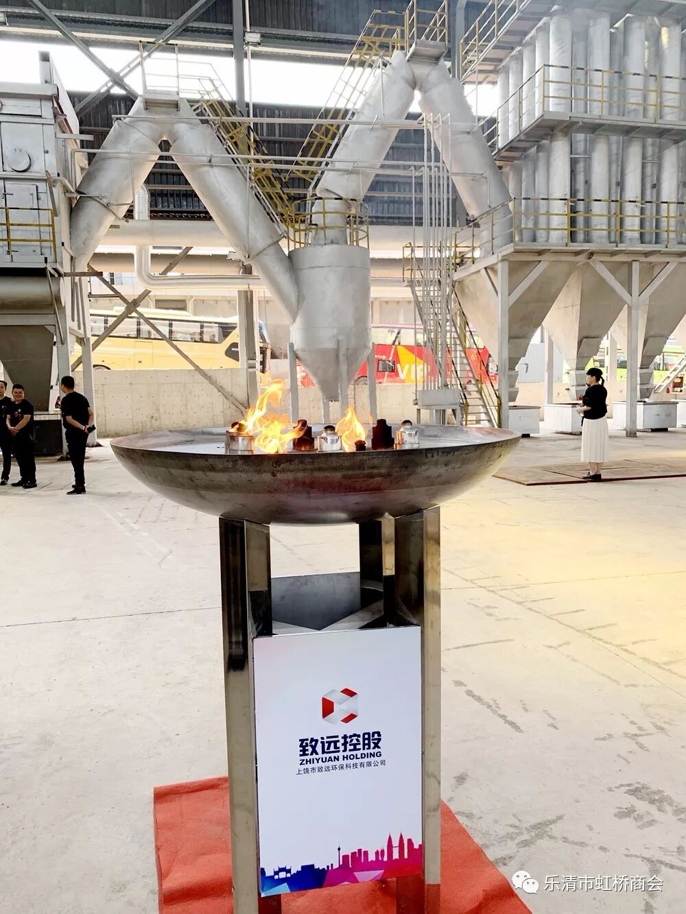 10:28,江西省玉山县委书记胡剑飞隆重宣布:致远环保二期项目竣工点火仪式开始。随后,醒狮采青,礼炮齐鸣,现场彩烟绽放,气氛热烈。王云龙等老一辈创业者亲手把从阳极炉采集的火种交到了以王鹏磊为核心的年轻一代的手中,象征着致远的薪火代代相传。