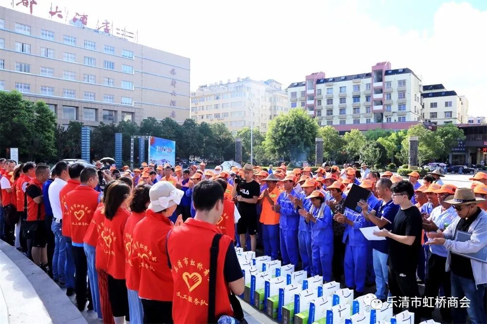 虹桥镇党委委员、人武部长谢建钦代表全体环卫工人对虹桥商会企业家们表示感谢,他说虹桥商会慰问一线环卫工人已成为一种习惯,每年的7-8月份在虹桥镇文化广场上总能看到虹桥商会企业家们忙碌的身影,这一坚持已有十多年之久。他希望通过虹桥商会的善行善举,能让更多的城镇居民重视环卫工人这一职业,自觉尊重环卫工人的劳动成果,养成良好的生活习惯,做到垃圾不落地,维护干净整洁的人居环境。