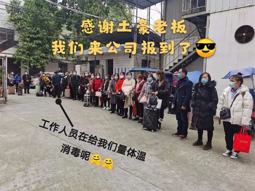 万事具备,只欠东风,在大环境的影响下,动车、汽车都未开通,只有高额的飞机票,在生产订单紧急,人员急需的情况下,公司老板一声令下:只要员工在25日到岗上班的,全额报销机票,车票等费用,员工在接到通知后,蜂拥而出,陆续的从四面八方飞来温州,为了使他们能尽可能少的接触人流,我们还提前安排好大巴车、客车、私家车等待他们的到来,下飞机后直接接回公司!从复工复产开始,我们每天统计员工到岗率,因为来自于老板最硬核的鼓励员工尽快返岗的措施,截止3月6日,除湖北籍员工外,我们到岗率超过90%。