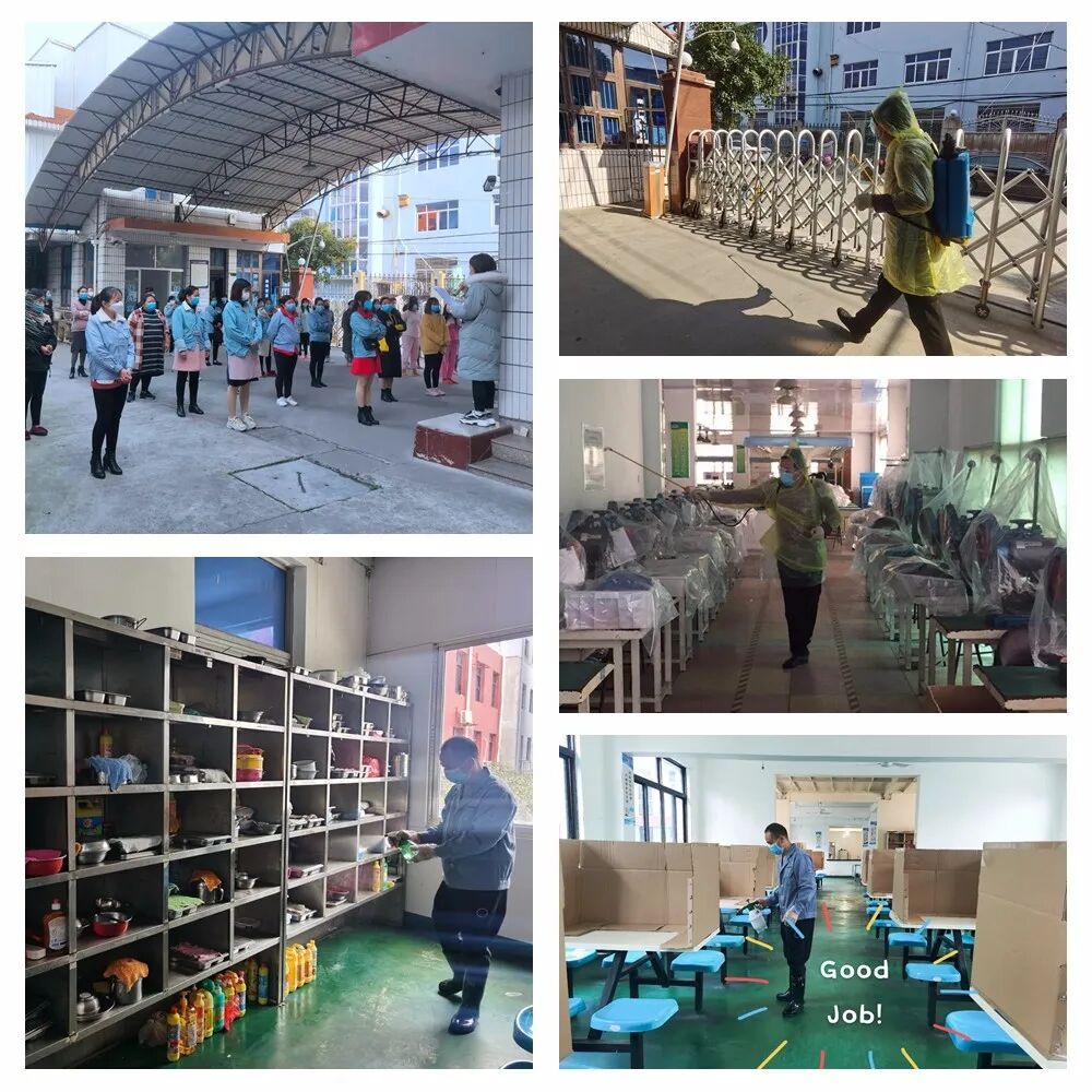 为了正常有序复工,复工前我们充足准备好各种防疫防护物资,认真做好供电、供水、设备设施等关键环节与重点场所的安全检查,对现场办公区、生产车间现场、电梯、公共区域等部位进行了全面消毒。在正式复工前,我们还专门开展了防疫防护知识宣讲及安全生产教育培训。