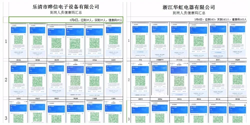 为了确保防疫工作顺利进行,我们对厂区进行封闭式管理,只保留一个出入口,所有员工进出必须接受测温、消毒。每天由公司两位值班经理轮班上岗,配合保安做好公司第一道关口工作,确保复岗员工、来访人员进入办公区域“体温关”“口罩关”“消毒关”三关合格、信息登记及时准确。由于早上又要手工记考勤,又是量体温、消毒,查看健康码,为了节省员工上班登记信息时间,所有员工在上班前都主动将自己的健康绿码发到微信群,随后将所有的员工健康码收集完毕上报助企员,以便我们可以每天及时掌握全体员工的健康情况。