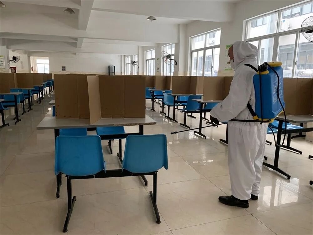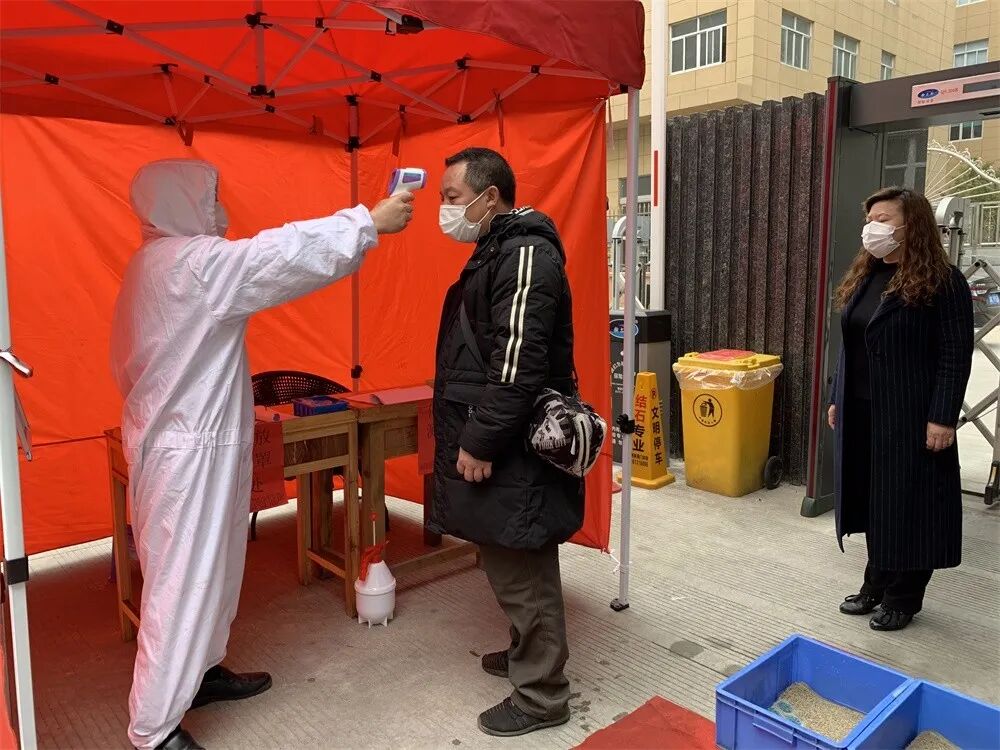 公司大门口严把人员进出检查关,进出实名登记,实行“封闭式”生产管理,返岗人员每天测温“零遗漏”。员工进入食堂也必须佩戴口罩,分批错时就餐,每餐桌立“十”字隔板,分隔成四个独立空间。安全员正忙碌着,对员工、厂区及过往车辆进行全面消毒,把疫情防控放在第一位。