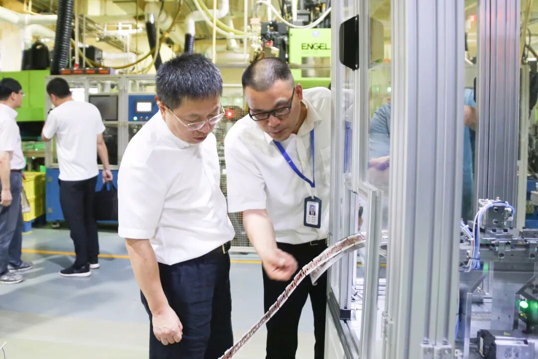 省经信厅调研组一行先后参观了广合科技模具生产车间、实验中心、汽车电子生产车间,总裁蔡庆明详细介绍了合兴模具技术研发中心和具备国家级检测资质的实验中心。近年来,合兴加强了与高等院校的产学研合作,建立人才培养和引进关系,推动了公司的技术人才团队的建设。合兴在技术的创新、智能制造、人才培养等方面做出的努力和取得的成绩得到来访领导的一致肯定。